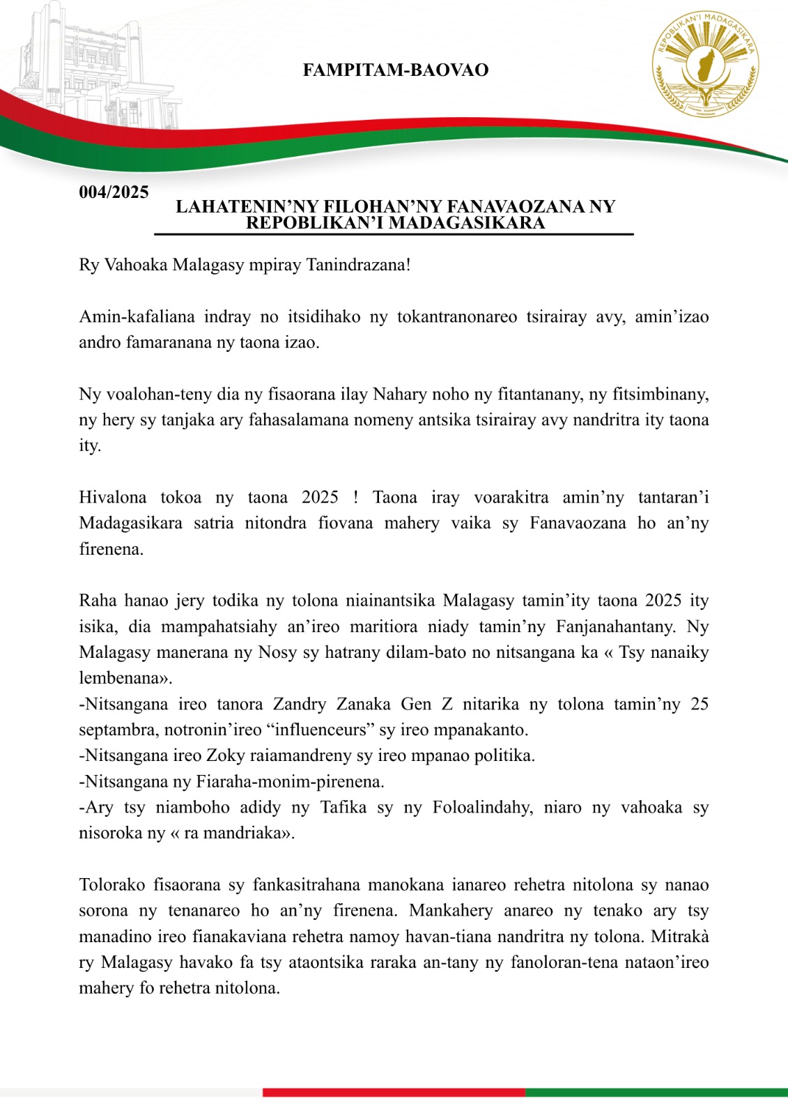 Hivalona tokoa ny taona 2025 ! Taona iray voarakitra amin’ny tantaran’i Madagasikara satria nitondra fiovana mahery vaika sy Fanavaozana ho an’ny firenena.